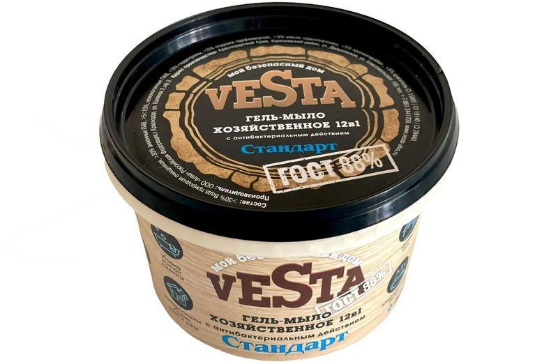 Средство моющее универсальное хозяйственное гель-мыло "VESTA". Концентрированное универсальное моющее средство хозяйственное гель-мыло "Vesta" высокопенное, эффективное средство для мойки всех поверхностей (в том числе лакокрасочных покрытий автомобилей), посуды, ванн, кухонь. Применимо для ручной стирки как белого, так и цветного белья. Хорошо очищает от любых, даже масляных загрязнений и мазута. Можно использовать для мытья рук.