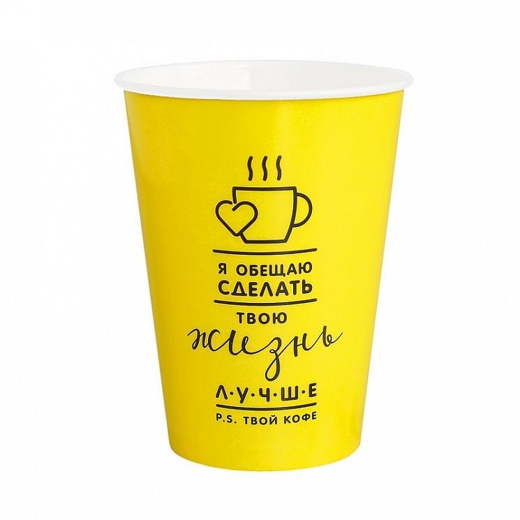 Бум стакан ПК 0,250 мл "Я обещаю сделать твою жизнь лучше" 50/1000 шт (желтый)
