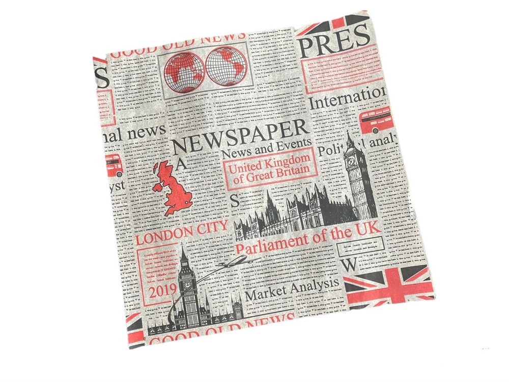 Бумага оберточная в листах 280*300 мм п/п небеленный 45 гр/м2 "Газета Лондон" (1000)