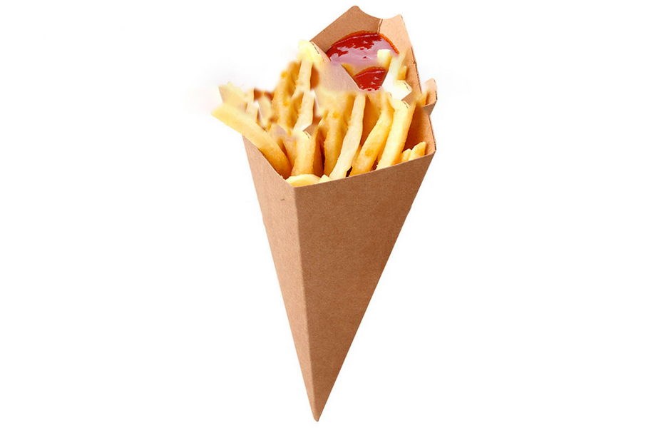 Короб под фри CONE L конусный 80х200мм с отделением под соус OSQ очень лёгкие и удобные в использовании.