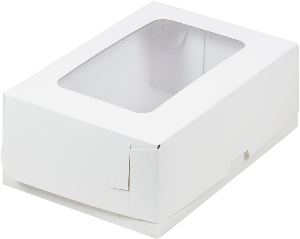 Коробка для тортов и пирожных с окном 190*130*75 мм, картон (белая)