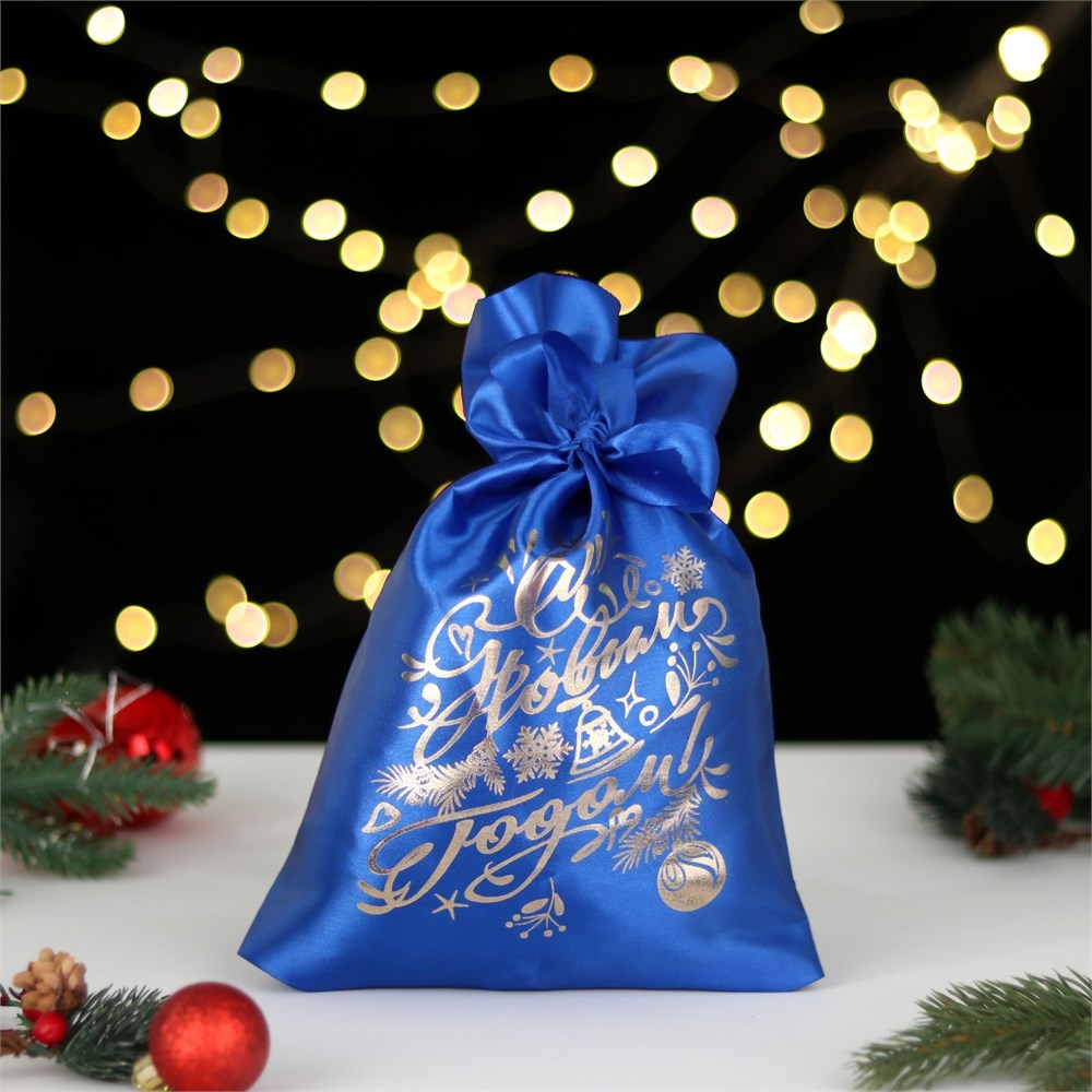 Мешок "С новым годом!", ёлка и игрушки, синий, 20 х 30см 10115558