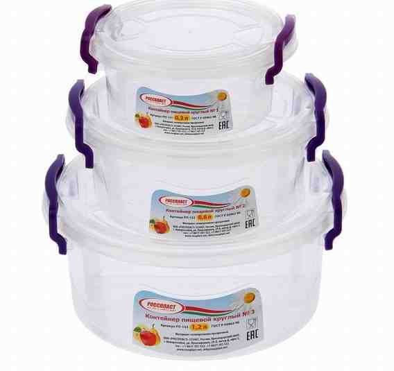 Набор контейнеров 3шт. 0,3+0,6+1,2л. круг. прозрачный