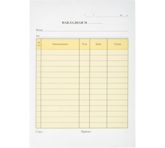 Накладная БЛАНК с ИНН самокопир.100 л А 5 2 - х сл.