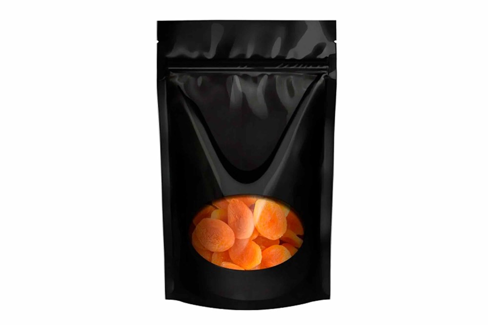 Пакет бумажный дой-пак ЧЕРНЫЙ 135х225 (40+40) (400шт) с овальным окном 80