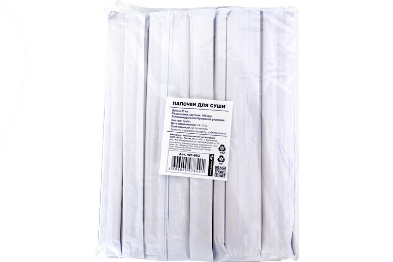 Палочки для еды в индив.белой бум.упаковке 23см (20уп х 100шт)