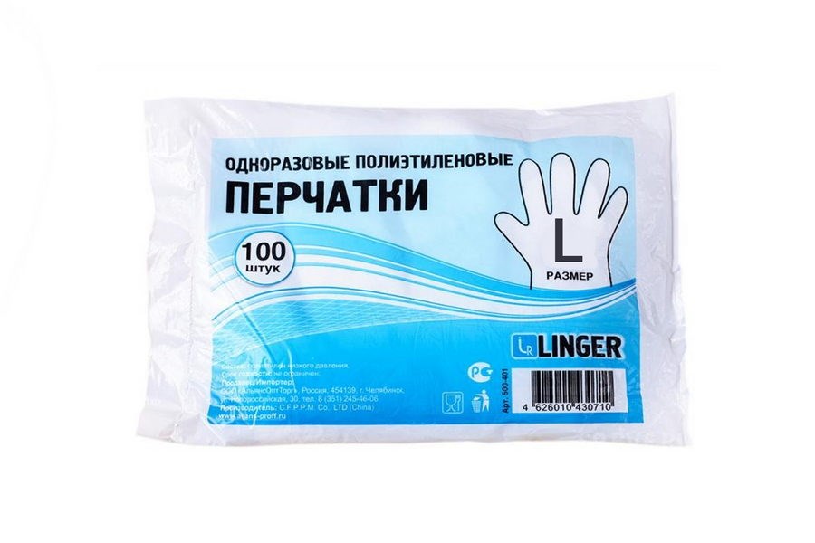 Перчатки одноразовые LINGER L /100упх100шт/ (100шт)