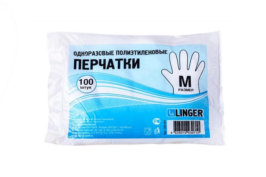Перчатки одноразовые LINGER M /100упх100шт/ (100шт)