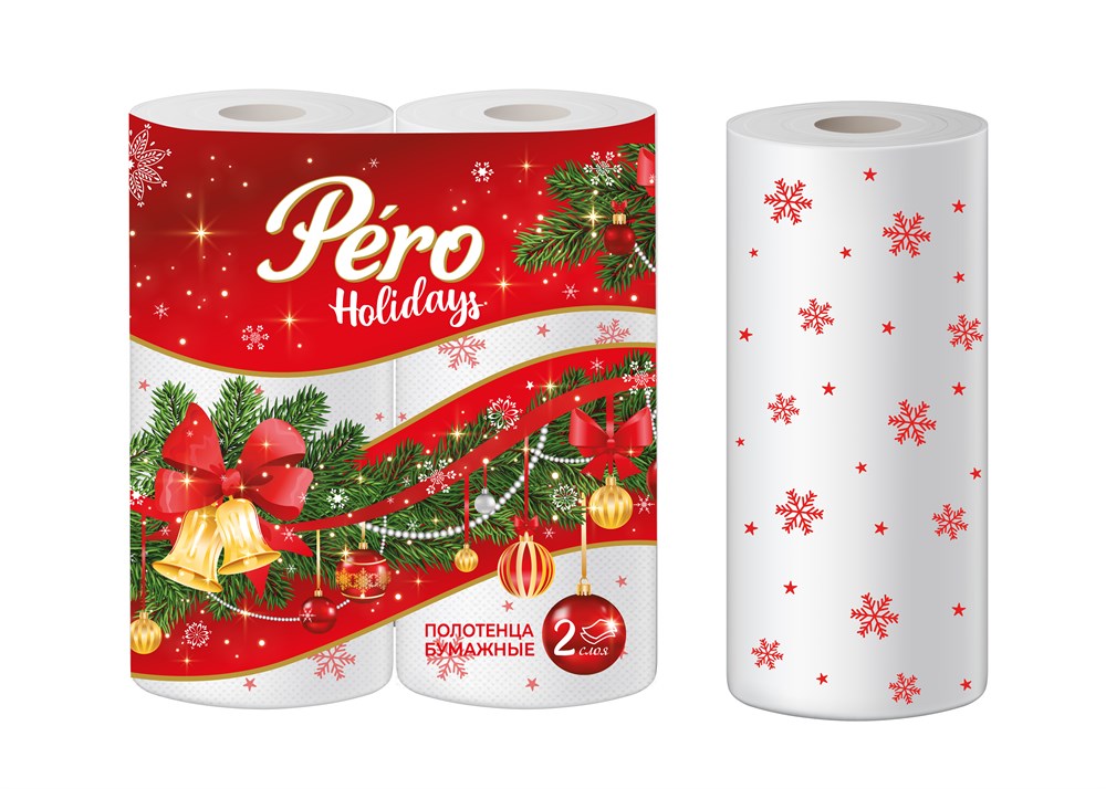 Полотенца бумажные Pero Holidays Новый Год 2сл 2рул,12в упаковке