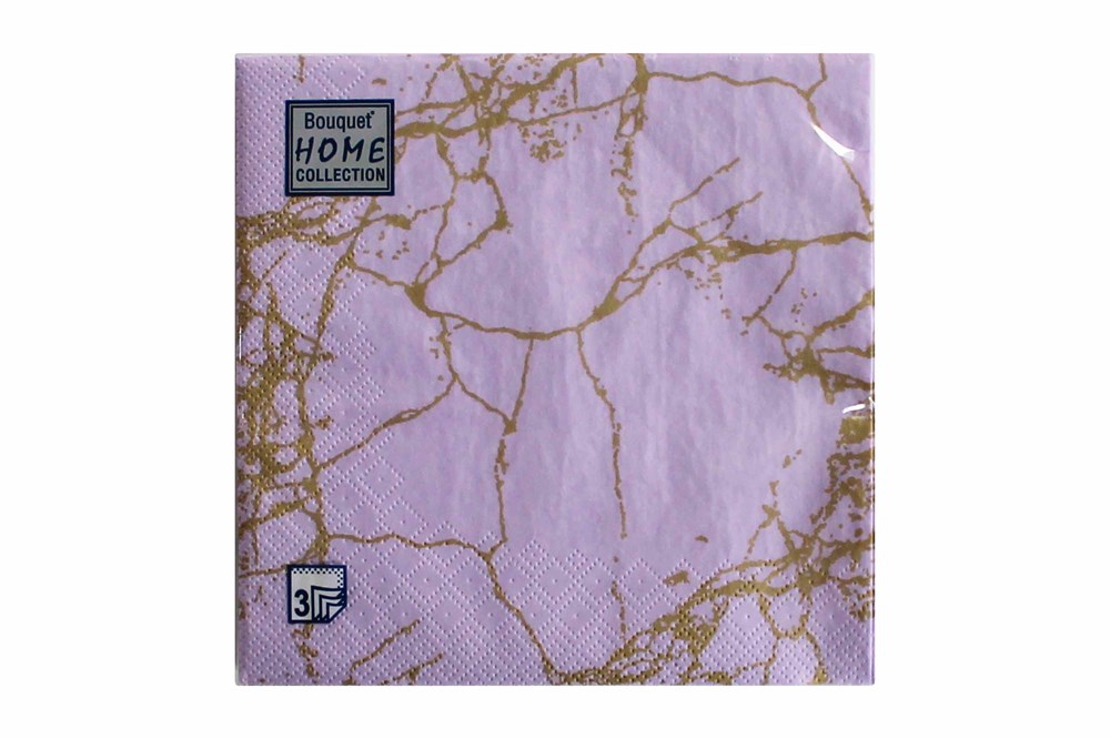 Салфетки 33х33 трехслойные Art Bouquet Мрамор золотой на лиловом 20 шт (12 уп)