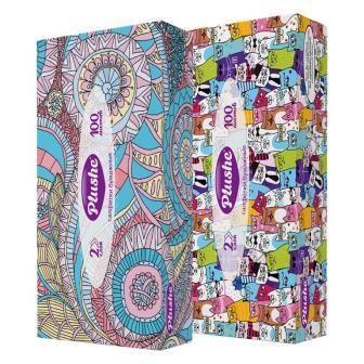 Салфетки бумажные Plushe (плюше) в коробке V-сложения 100л, 2-х слойные 1/35 в кор ЮГ