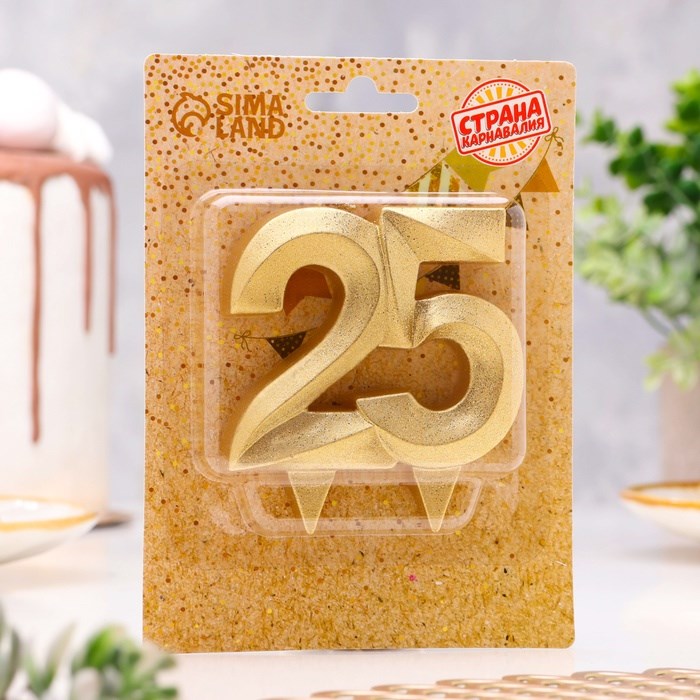 Свеча для торта юбилейная «Грань», цифра 25, золотой блеск, 8 см