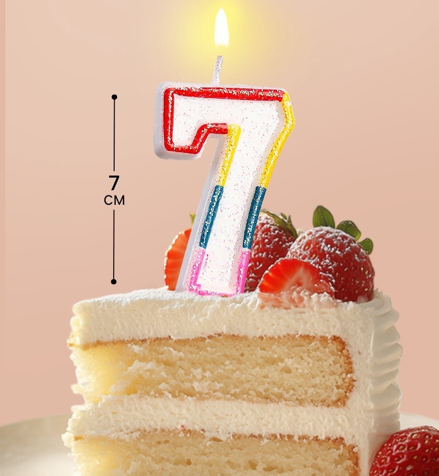 Свеча для торта с блестками «Блестящий ободок», цифра "7" , 7 см 403537