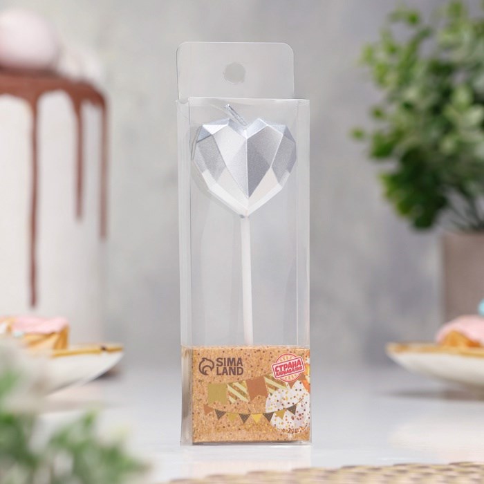 Свеча для торта «Сердце», серебристая