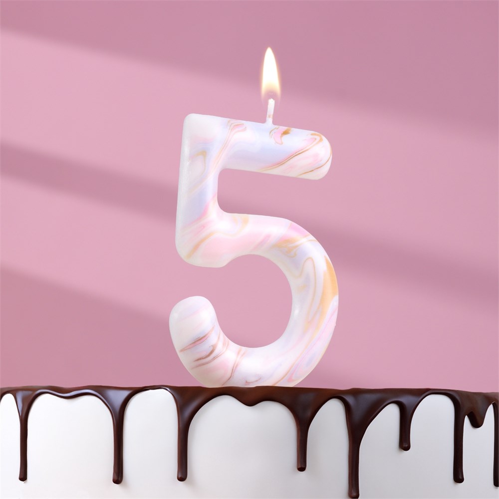 Свеча в торт «Белый мрамор», цифра 5, ГИГАНТ, 9 см