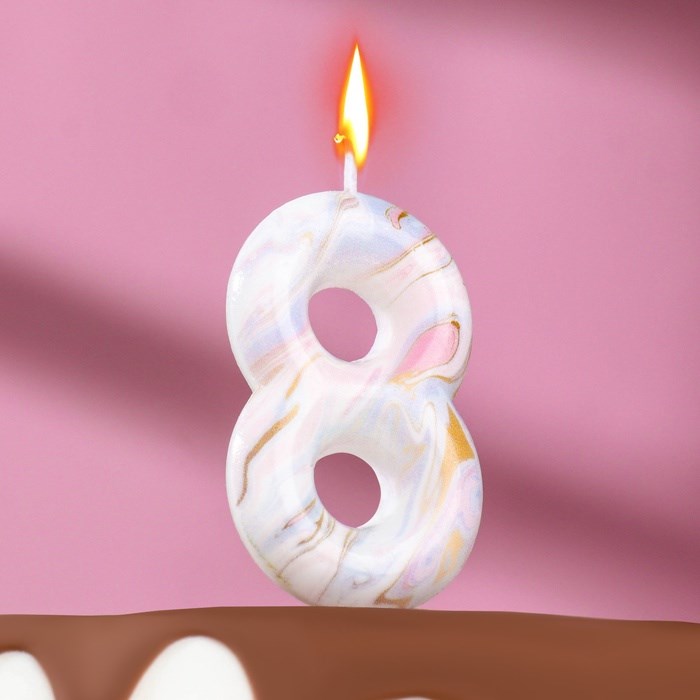 Свеча в торт «Белый мрамор», цифра 8, 5.5 см