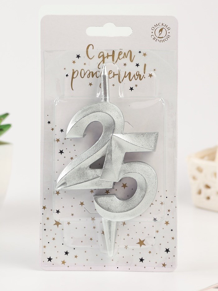 Свеча в торт «Юбилейная», цифра 25, серебряная