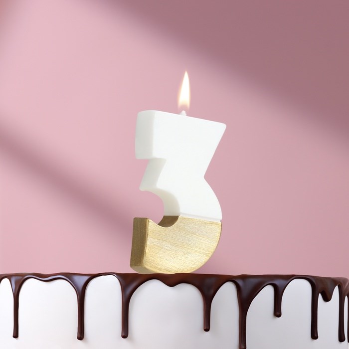 Свеча в торт «Манхеттен», цифра 3, белая с золотом, 5 см