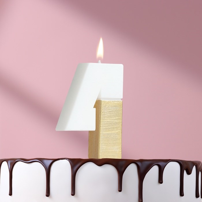 Свеча в торт «Манхеттен», цифра 4, белая с золотом, 5 см