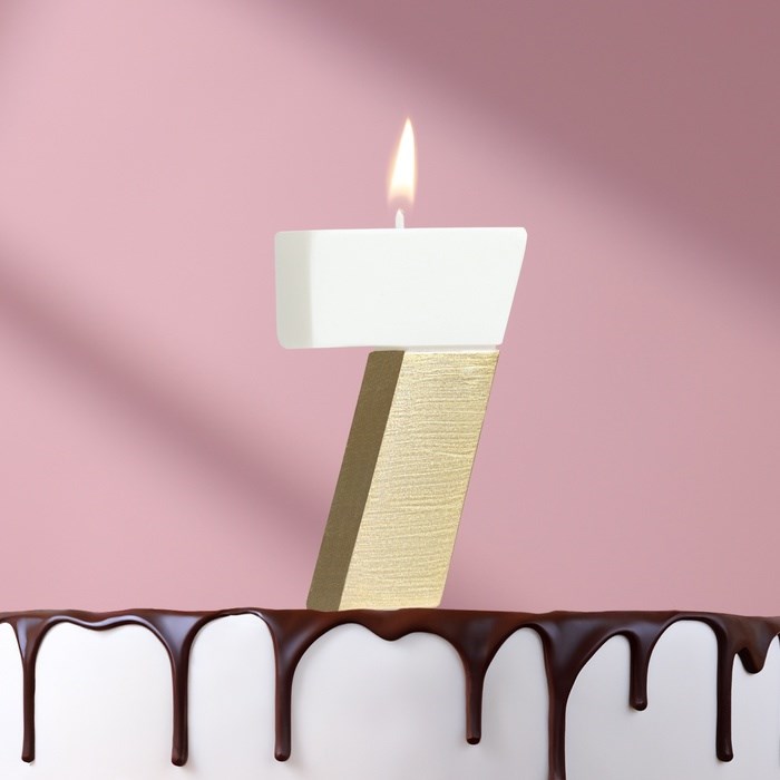 Свеча в торт «Манхеттен», цифра 7, белая с золотом, 5 см