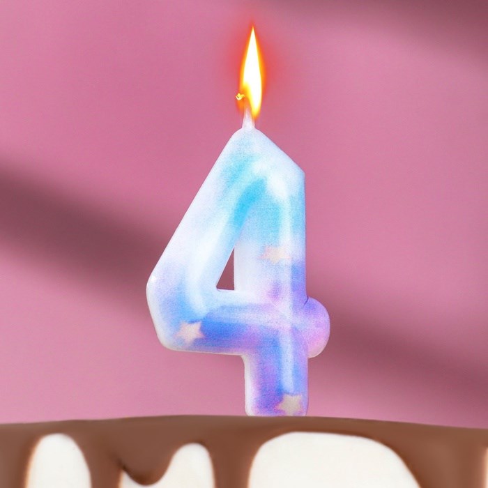 Свеча в торт на шпажке «Звездопад», цифра 4, 5.5 см
