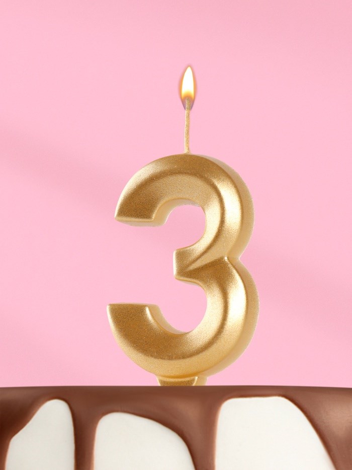 Свеча в торт «Цифра 3», золотая, 6.5 см
