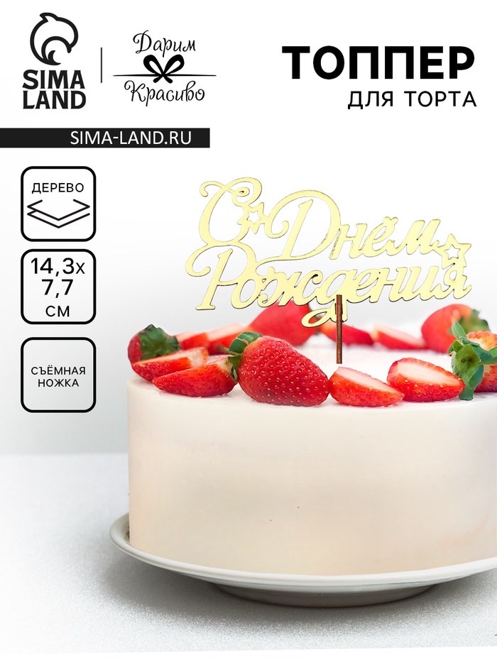 Топпер для торта деревянный «С Днём Рождения», золотой, 14.3×7.7 см