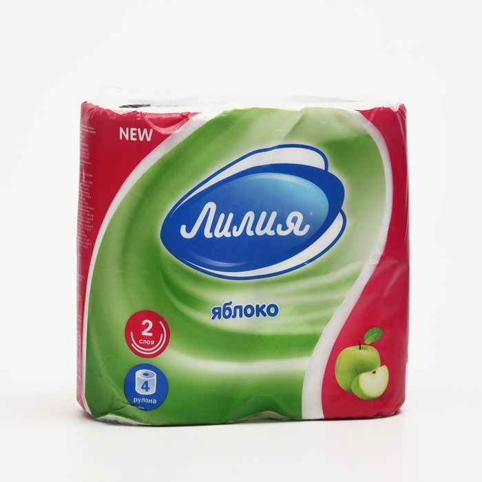 Туалетная Бумага Лилия Яблоко 2сл 4рул, 12 в тр.уп., белый цв.