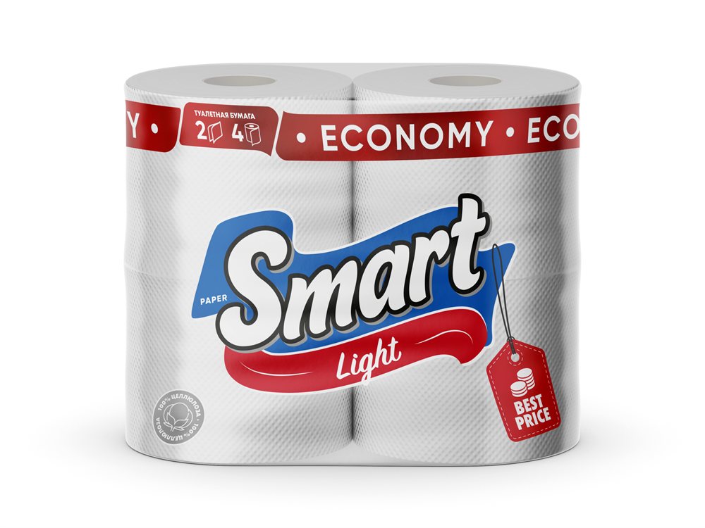Туалетная бумага PaperSmart Light 2сл 4рул, 12 в тр.уп., белый цв.
