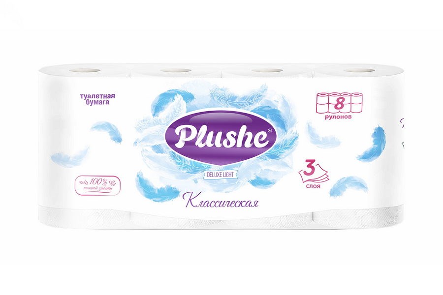 Туалетная бумага PLUSHE Delux Light 3-х сл. 15м (8рул) Классик (8уп)