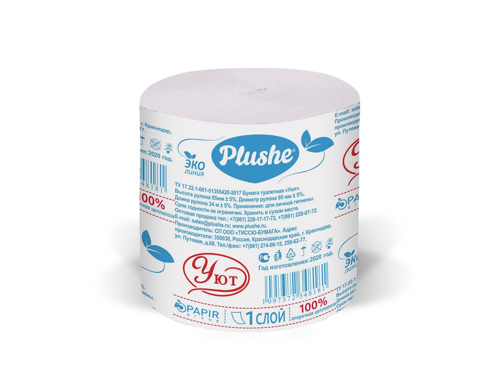 Туалетная бумага Plushe (плюше) "БОГАТЫРЬ +" СЕРАЯ, без втулки 1 слой, 30 в уп ЮГ