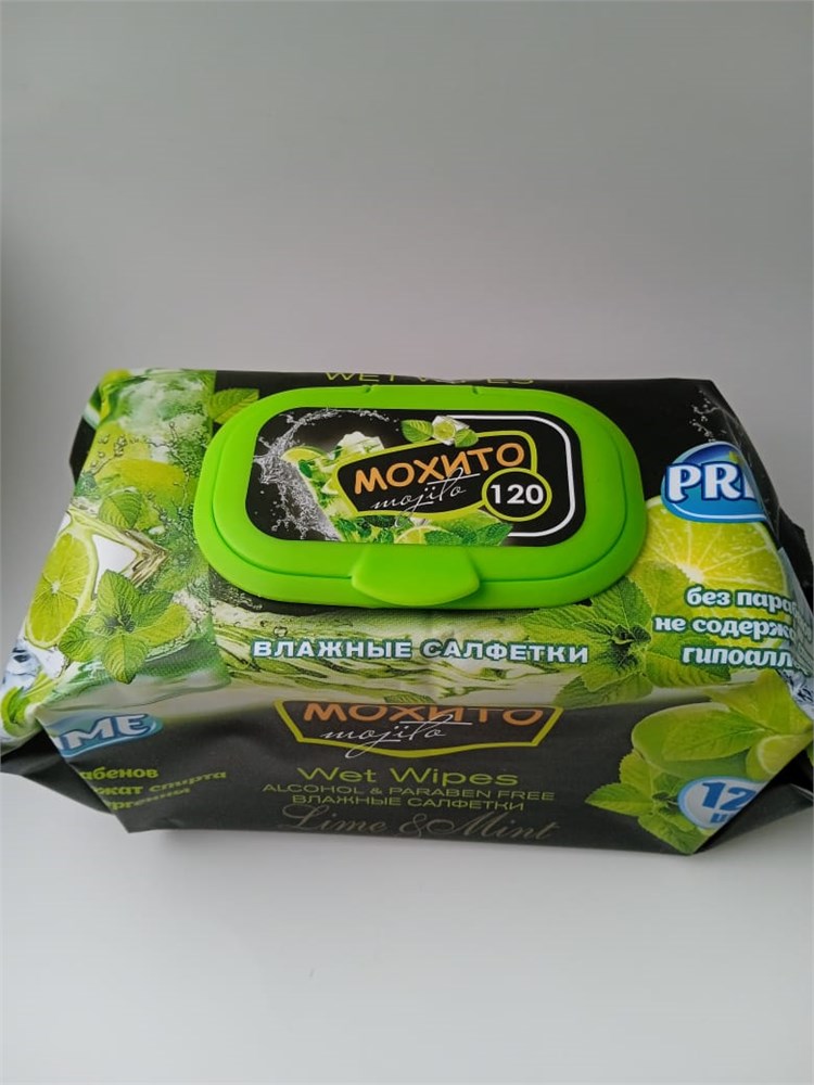 Влажные салфетки Прайм 120 л "Парфюмированные" МОХИТО клапан 12 шт. в кор.