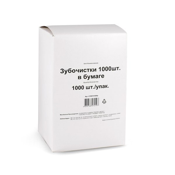 Зубочистки в индивид. БУМАЖНОЙ упаковке (1000шт) 1/50 ПК