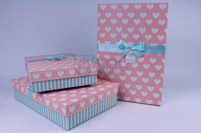 Набор подарочных коробок 1/3 КВАДРАТ ОДНОТОНКА С БАНТОМ В УГЛУ