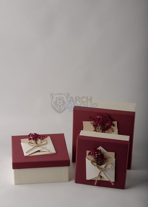 Набор подарочных коробок (1уп х 4 шт)ПРЯМОУГ В ПОЛОСКУ С БАНТОМ
