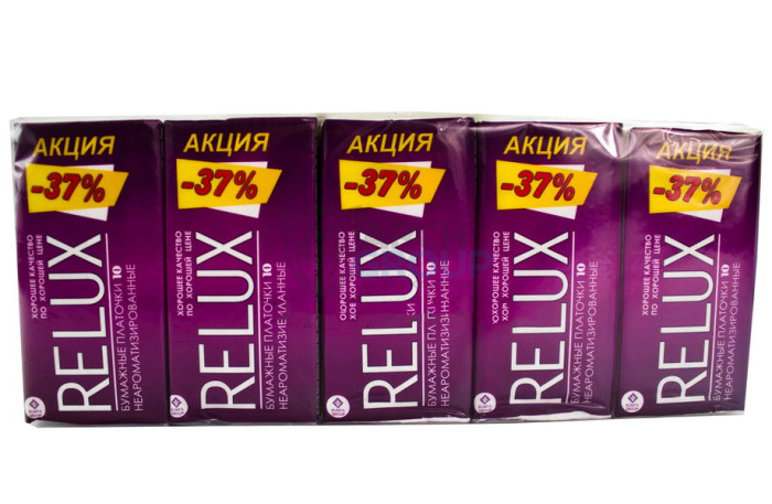 Платочки бумажные РЕЛЮКС 2-сл. неароматиз (24упx10шт) 240шт