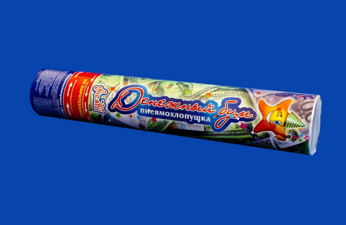 Пневмохлопушка "Денежный бум" 28см /6уп х 12шт/ (72шт) представляет собой яркий и оригинальный аксессуар для праздников и вечеринок. Особенностью этой модели является её наполнение: внутри хлопушки находятся бумажные купюры долларов и евро с двусторонней печатью.