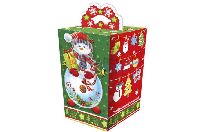 Подарочная упаковка 800г НГ ОТКРЫТКА с тисн. веревочные ручки (100шт)