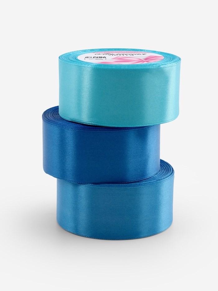 Атласная лента, набор 3 шт., 40 мм, 23±1 м, голубая, синяя