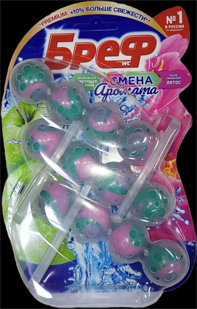 БХ блок д/туалета БРЕФ Премиум парфюм Яблоко/Лотос 3x50г (9шт/кор)