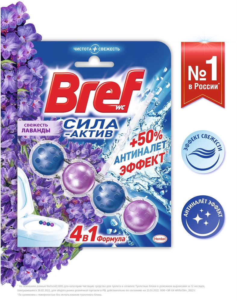 БХ блок д/туалета БРЕФ сила-актив Лаванда 50г (10шт/кор)