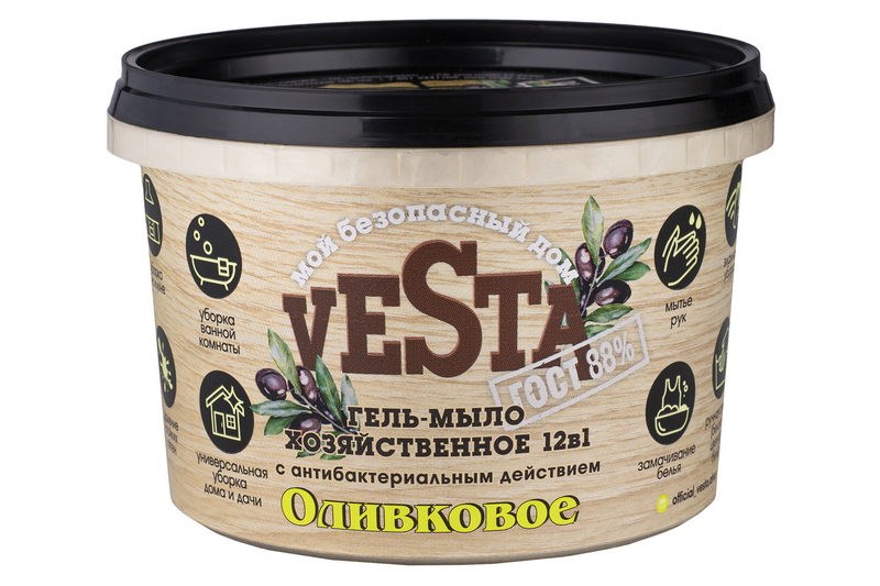 Средство моющее универсальное хозяйственное гель-мыло "VESTA". Концентрированное универсальное моющее средство хозяйственное гель-мыло "Vesta" высокопенное, эффективное средство для мойки всех поверхностей (в том числе лакокрасочных покрытий автомобилей), посуды, ванн, кухонь. Применимо для ручной стирки как белого, так и цветного белья. Хорошо очищает от любых, даже масляных загрязнений и мазута. Можно использовать для мытья рук.