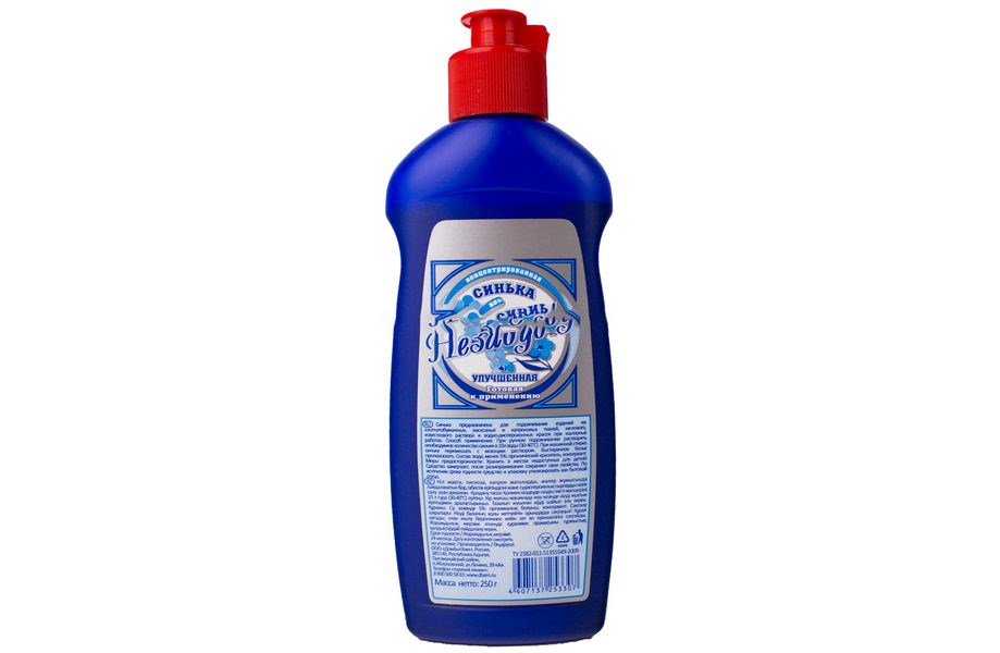 Средство предназначено для подсинивания изделий из хлопчатобумажных, вискозных и капроновых тканей; меловых, известковых растворов и водно- дисперсионных красок при малярных работах.