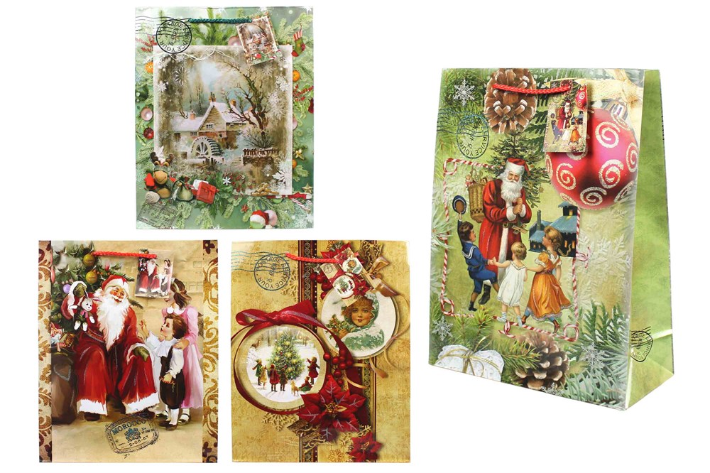 Бум пакеты НГ 26 х 32 х 10 Ретро с блестками (20 шт) микс N1035