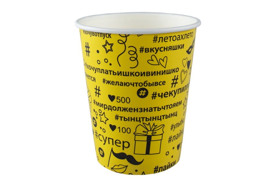 Стакан бумажный 250мл 80мм Хэштег желтый Папирус сделан из качественного картона по новейшим технологиям.