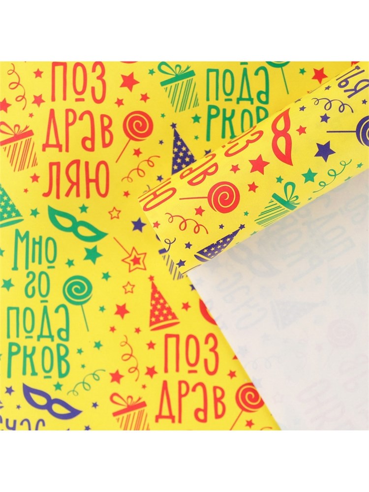 Бумага упаковочная глянцевая «Много подарков», 70 х 100 см