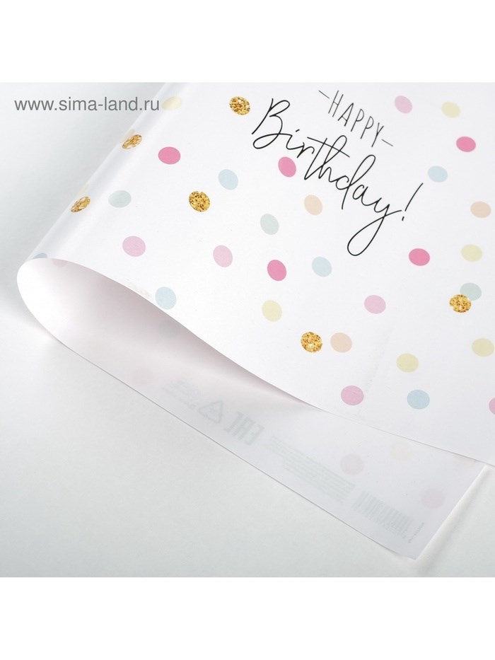 Бумага упаковочная глянцевая «С Днём Рождения!», 70×100 см