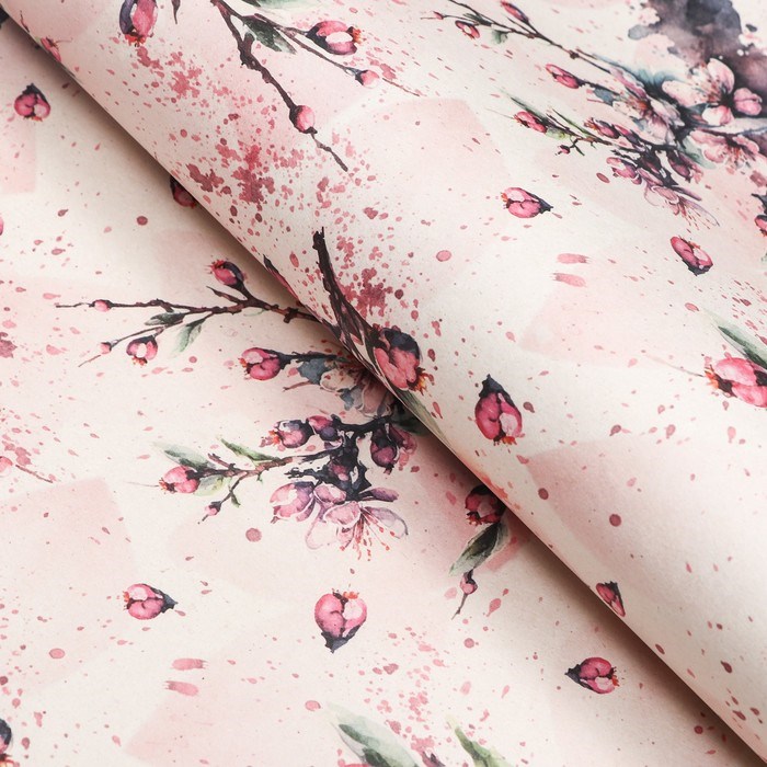 Бумага упаковочная, крафт белый "Сакура", 70х100 см 9670302