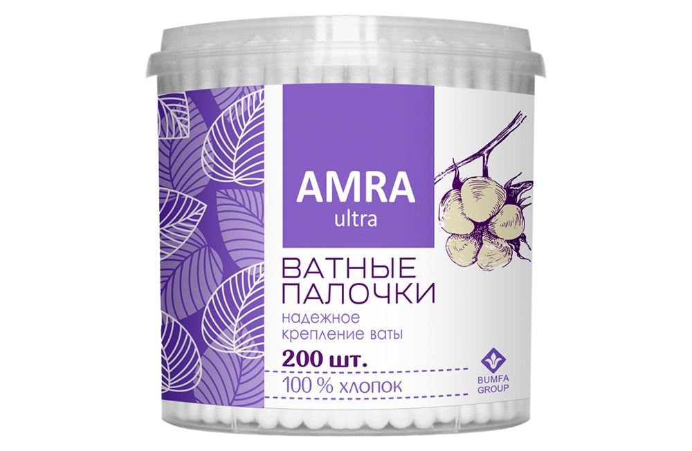 Бумфа Ватные палочки АМРА цилиндр 200 (24уп)
