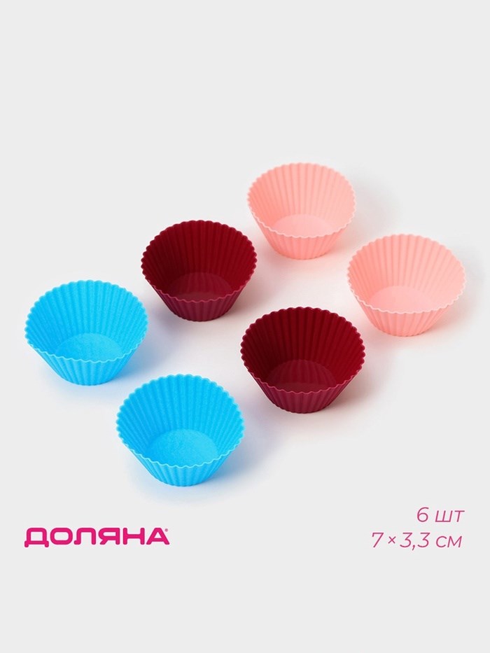 Формы для выпечки кексов Доляна «Риб.Круг», силикон, 7×3.3 см, набор 6 шт., МИКС